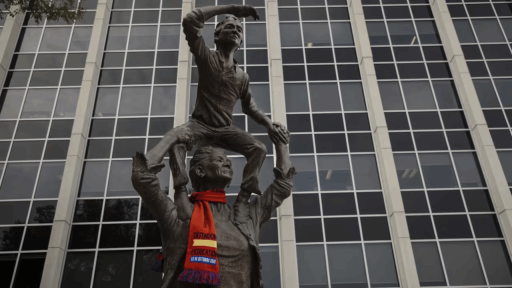 A statue outside the Alberta Teachers’ Association on Monday. Amber Bracken/The Canadian Press